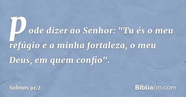 Ele é o meu refúgio e a minha fortaleza, o meu deus em quem confio. Muitos o usam de forma mística, sem qualquer proveito para sua alma. O salmo 91 é o texto clássico do livramento divino. Esboço de pregação em salmos 91.9: Nós, porém, devemos nos deter nas promessas de deus aqui exaradas. O salmo 91 faz referência a encarnação, sofrimento, morte e ressurreição de jesus, aquele que antes de ser introduzido no mundo dos homens estava no esconderijo do altíssimo.. O tema central do salmo 91 é a proteção de deus, em meio aos perigos e tempestades da vida.